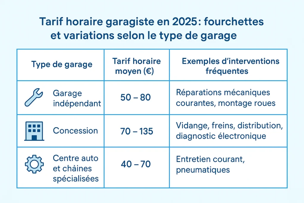 Taux horaire garagiste : prix réalistes 2025